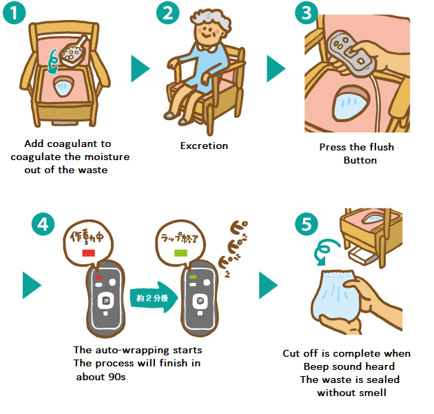 Elegant, warm ambient, hygienic, auto-wrapping toilet, suitable for home use. Keeping home odourless and hygienic. Transform and disguise as a chair when not in use.